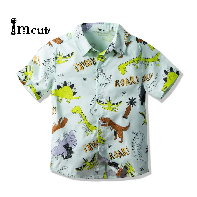 Name: Imcute-ropa de verano para niños, vestido de mangas cortas para niños, camisa con estampado de dinosaurio de dibujos animados, cuello de solapa, Tops de bebé